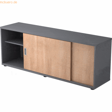 Das mcbuero.de Sideboard 1,5 OH ist mehr als nur ein Möbelstück – es ist ein Statement. Mit seiner eleganten Farbkombination aus Graphit und Nussbaum fügt es sich nahtlos in jede Büroumgebung ein und verleiht Ihrem Raum eine warme und einladende Atmosphäre. Die klaren Linien und die schlichte Formgebung unterstreichen den modernen Charakter des Sideboards und machen es zu einem echten Hingucker.